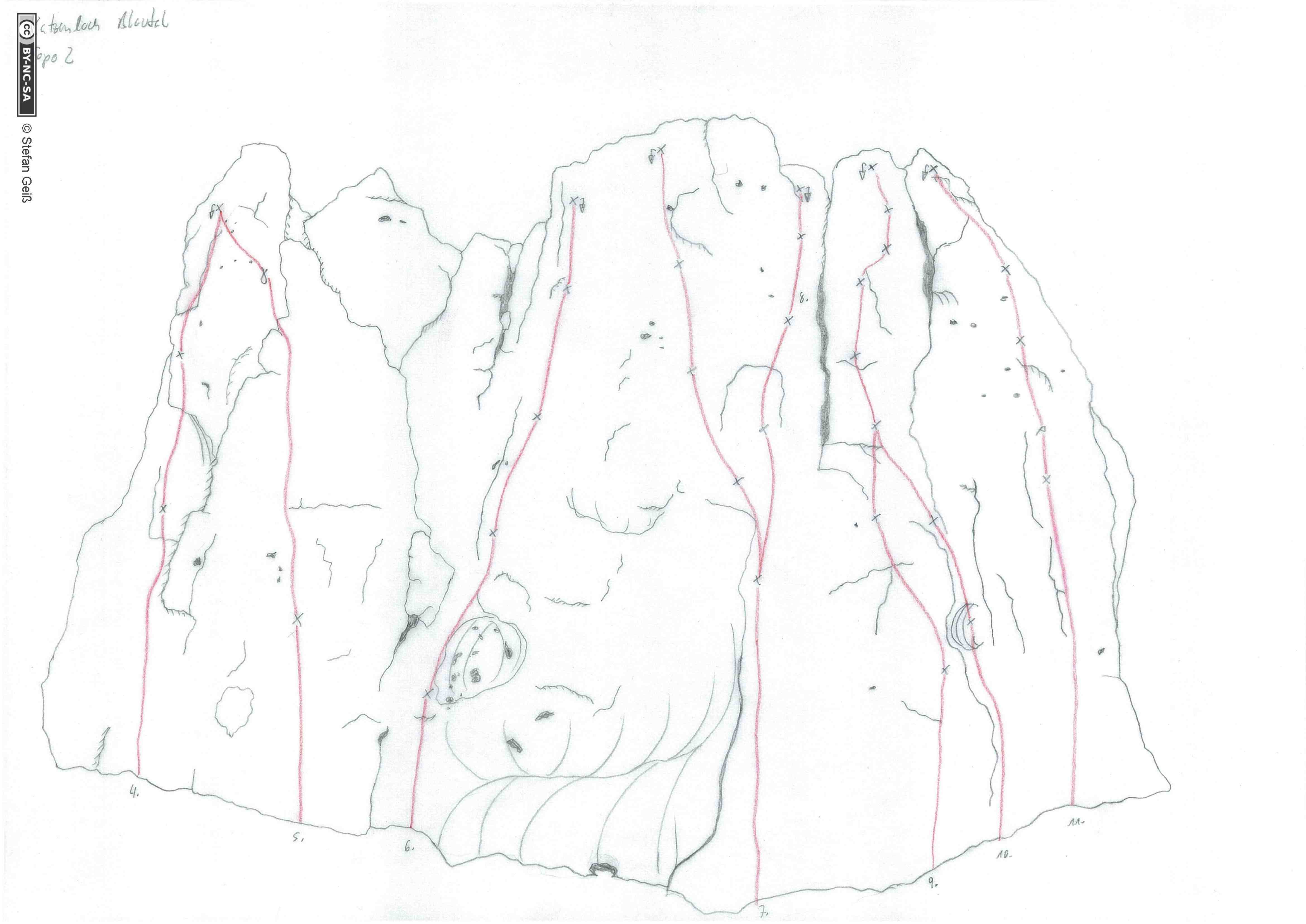 KatzenlochPublished: 16 April 2014 | Written by Super User | Print | Email | Hits: 21976Page 2 of 3 Topo files: .jpg / .pdf / .svg Route files: .xls / .ods Katzenloch Topo 2 Nr. Route UIAA Info 4 - - 5 Verschneidung 5 6 Katzenbaby 6 7 Katzenriss 4 8 Variante 4 9 Kindertraum 3 9,1 Verbindung 4- 10 Jugendtraum 4- 11 Alter Hakenweg 6+ StartPrev123NextEnd Prev Next
